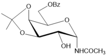 Preparation of 6-O-benzoyl-N-acetyl-3,4-O-isopropylidene-α-d-galactopyranosylamide (55) by hydrolysis of the oxazoline 53